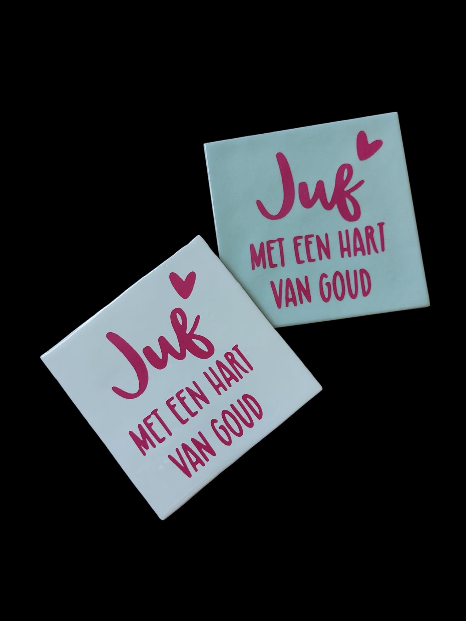 Kies de kleur van de tegel. Kies de kleur van de tekst JUF.